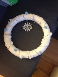 Then I wanted a winter wreath to replace the fall one I have in my classroom that I made last year so I made this yarn one.